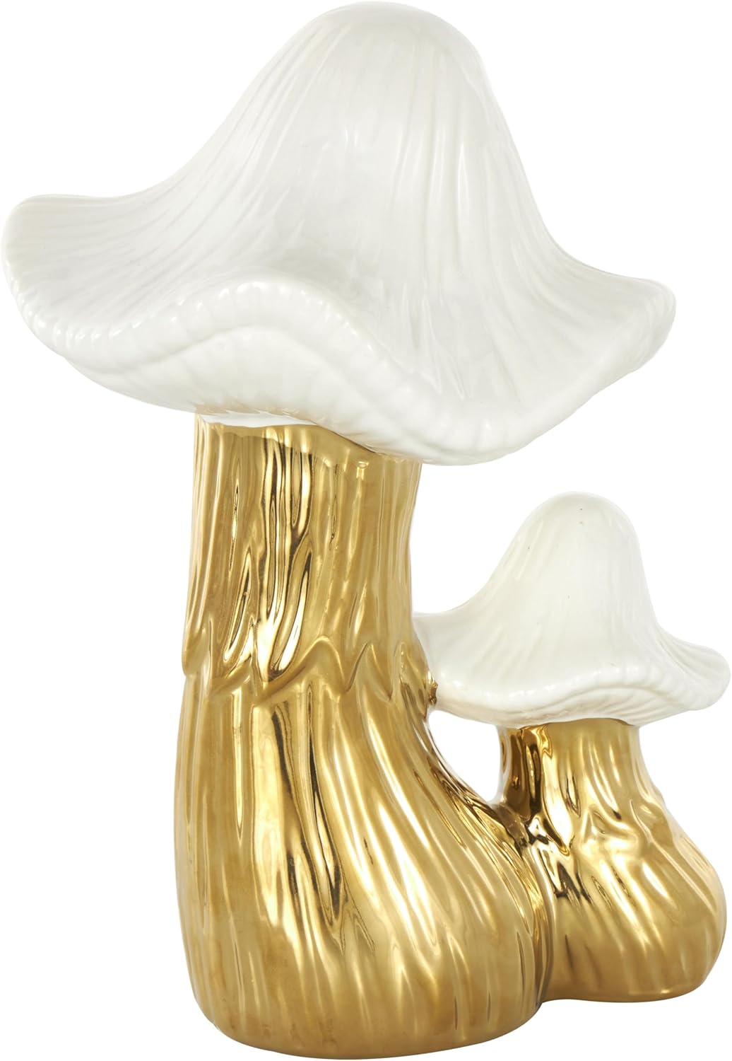 Deco 79 Ceramic Mushroom Decorative Sculpture Home Decor Statue with White Tops and Textured Grooves, Accent Figurine 7″ x 6″ x 10″, Gold