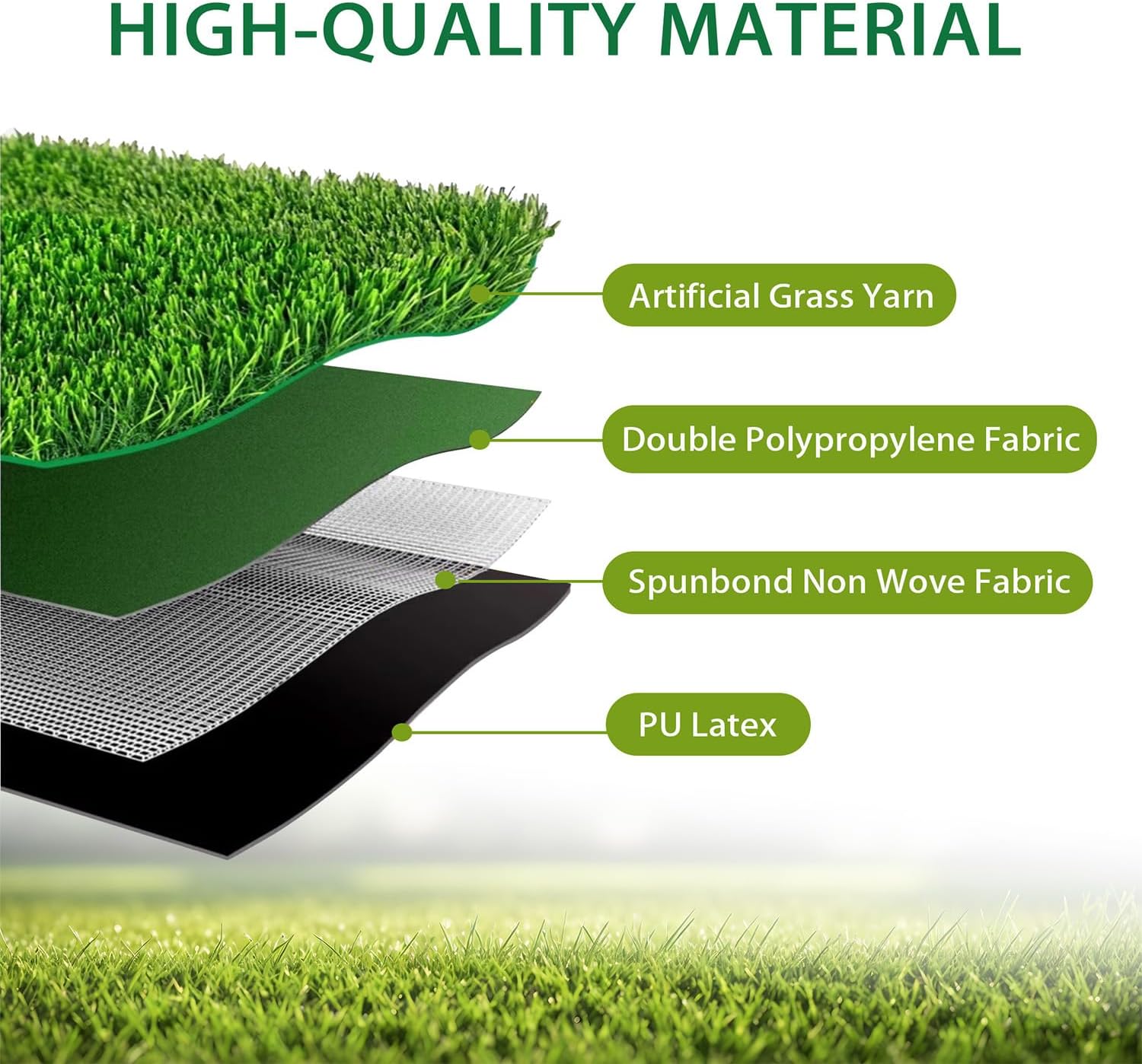 The artificial grass mat is made from high-quality PE, offering a soft, non-irritating surface safe for bare feet. Excellent UV stability ensures your fake lawn remains fade-resistant for years.This outdoor tiles for grass features a multi-tone design for a natural look. Combining straight and curved yarns enhances density and visual appeal, effectively hiding the substrate.Our grass placemats boasts a heavy-duty, triple-layer backing for maximum durability and sports-level shock absorption. This pet-friendly artificial grass is 100% eco-safe, ideal for residential and pet areas.