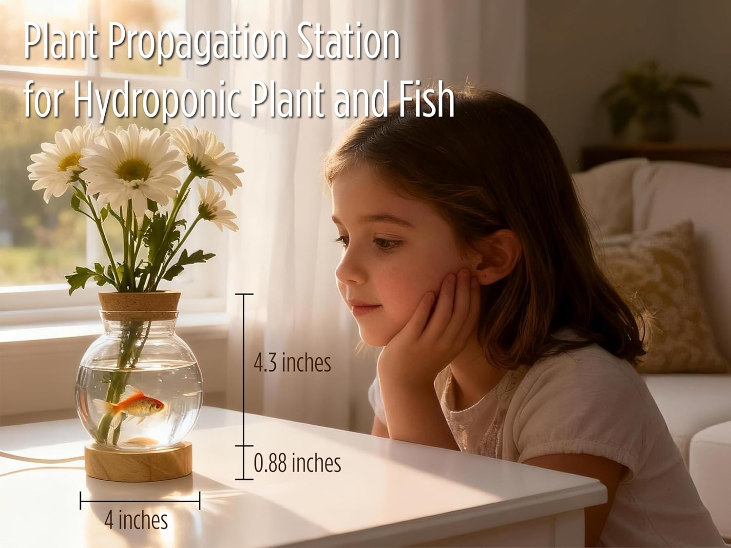 ✨ First ImpressionsThis round GLASS planter station with a waterproof lighted wooden base feels like a hybrid between a science experiment and a piece of modern art. It’s marketed as a desktop hydroponic terrarium, but it doubles as mood lighting and décor. I emphasize this IS glass. Clear, thick glass.🔧 Design & Build- Glass Planter: Crystal-clear, round vessel that showcases roots as much as leaves—perfect for propagation enthusiasts.- Wooden Base: Waterproof and fitted with integrated LED lighting. The glow highlights the plants while adding ambient light to the room.- Compact Size: Designed for desks, shelves, or countertops; it’s more “conversation piece” than large-scale grow station.🌿 Practical Use Cases- Propagation: Ideal for rooting cuttings in water- Hydroponics: Supports small-scale hydroponic growth, though it’s more decorative than agricultural.- Home & Office Décor: Functions as a living lamp, blending greenery with soft illumination.- Gift Potential: A stylish option for plant lovers, office workers, or anyone who wants a low-maintenance splash of green.🎯 VerdictThis station is about aesthetic science. It’s perfect for showcasing propagation experiments while adding a warm glow to your space. Think of it as a “miniature greenhouse meets mood lamp”—a stylish fusion of nature and design.