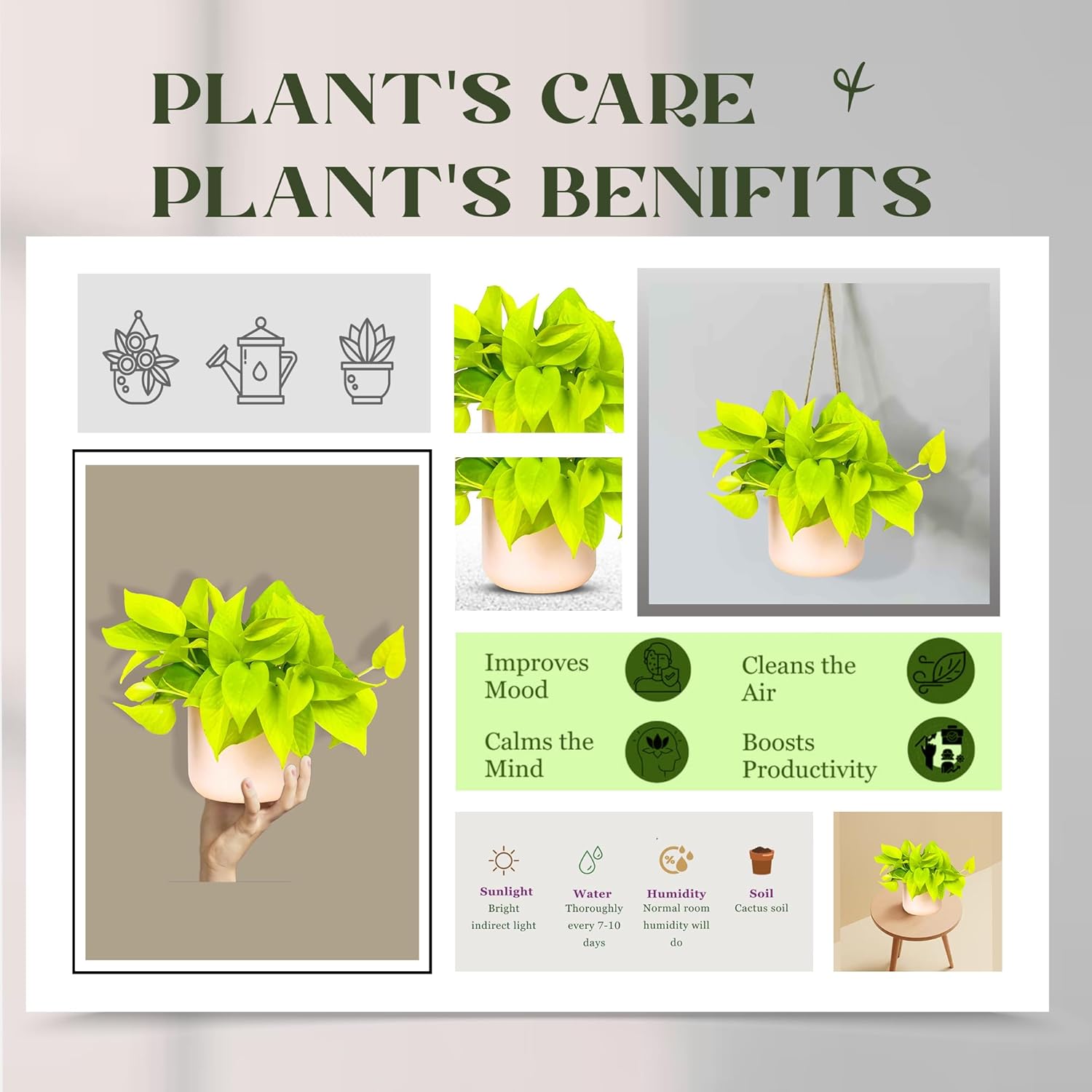 【Great for Home or Office】 – Ideal as a desk plant, shelf accent, or hanging plant; suitable for apartments, dorms, and workspaces.