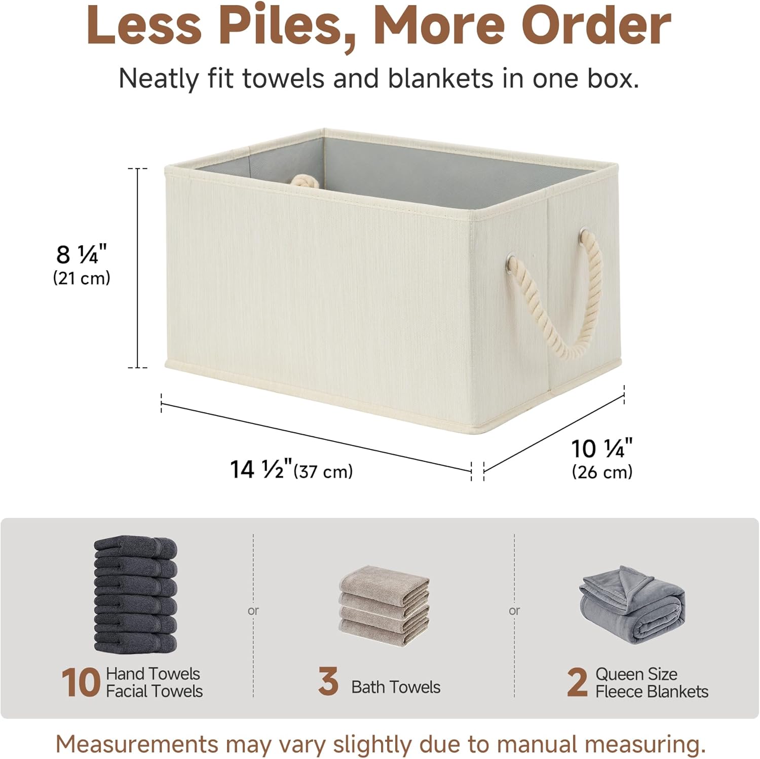 These storage baskets are amazing. I’ve had them for a few years, and they still look great. Perfect for organizing clothes or other items in closets and shelves.