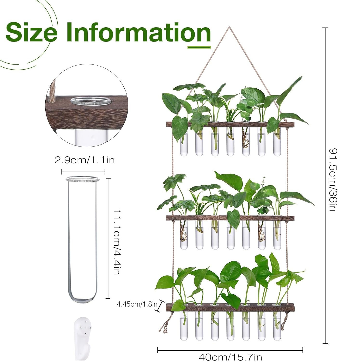 Unique Decoration: Simple and elegant 3 tiered wooden stand with plant propagation tubes design is to hold more plants in less place and gives the nice touch to your house. It can be hang on window sill, art wall for decoration in dormitory or bedroom.