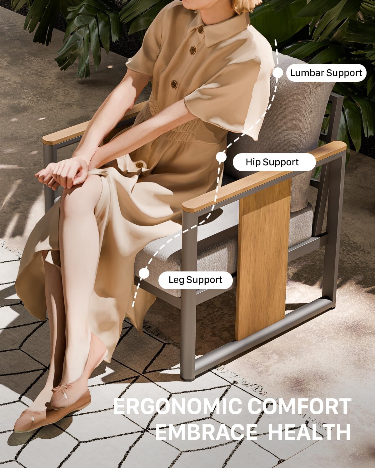 【Exceptional Weight Capacity & Spacious Seating】 Engineered for durability and comfort, this aluminum outdoor sectional supports impressive loads: the aluminum outdoor sofa , the loveseat 800 lbs, and each of the outdoor metal chairs 400 lbs. Designed with correct height and generous dimensions, it accommodates users of all sizes safely, whether relaxing alone or entertaining guests in your outdoor conversation sets